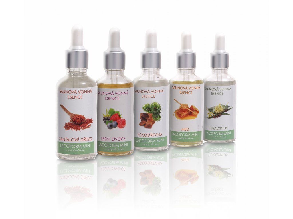 Koncept Lacoform Mini zahrnuje sadu základních šesti esencí + 2 zesilovací esence. Je primárně určen pro domácí použití. Praktická malá balení s kapátky umožňují dávkování esence do saunové naběračky a měnit vůně během saunování. Základní esence: Lemongrass, Kosodřevina, Eukalyptus, Alpské byliny, Santalové dřevo a Lesní ovoce nabízí ty nejlepší zástupce jednotlivých typů vůní, od citrusových přes bylinné či ovocné až k mátovým. S přidáním zesilovací esence Med můžete dodat základním vůním sladký, těžký nádech. S přidáním zesilovací esence Mentol můžete naopak základní esenci odlehčit a doplnit ji o lehké, větrové tóny.