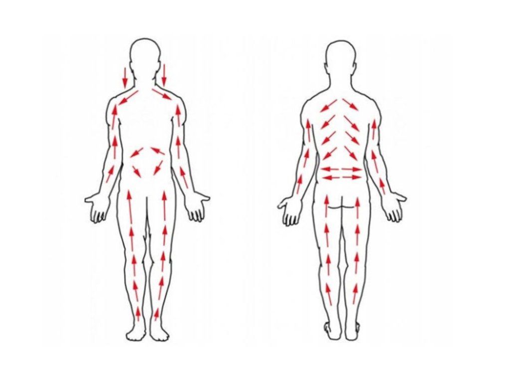 Pohyby by měly být prováděny směrem k srdci, což poskytuje komplexní a účinnou exfoliaci.