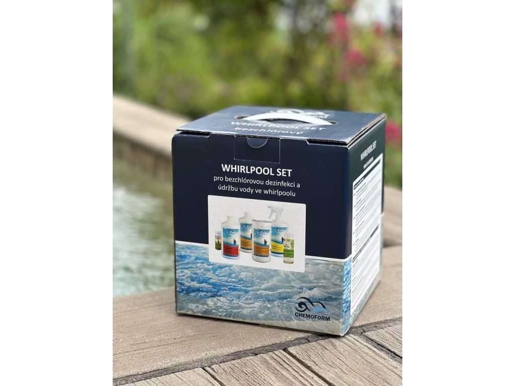 Set bez-chlorových přípravků na úpravu vody ve whirlpoolech a vířivkách.